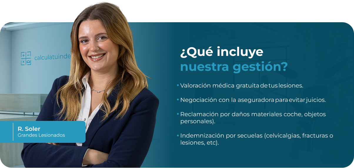 En Calculatuindemnización (CTI) somos abogados especializados en accidentes de tráfico en España con más de 30 años de experiencia ayudando y orientando a víctimas a obtener la compensación que merecen. Si has sufrido un accidente en Valencia, nuestro equipo de juristas, médicos y peritos está listo para defender tus derechos.